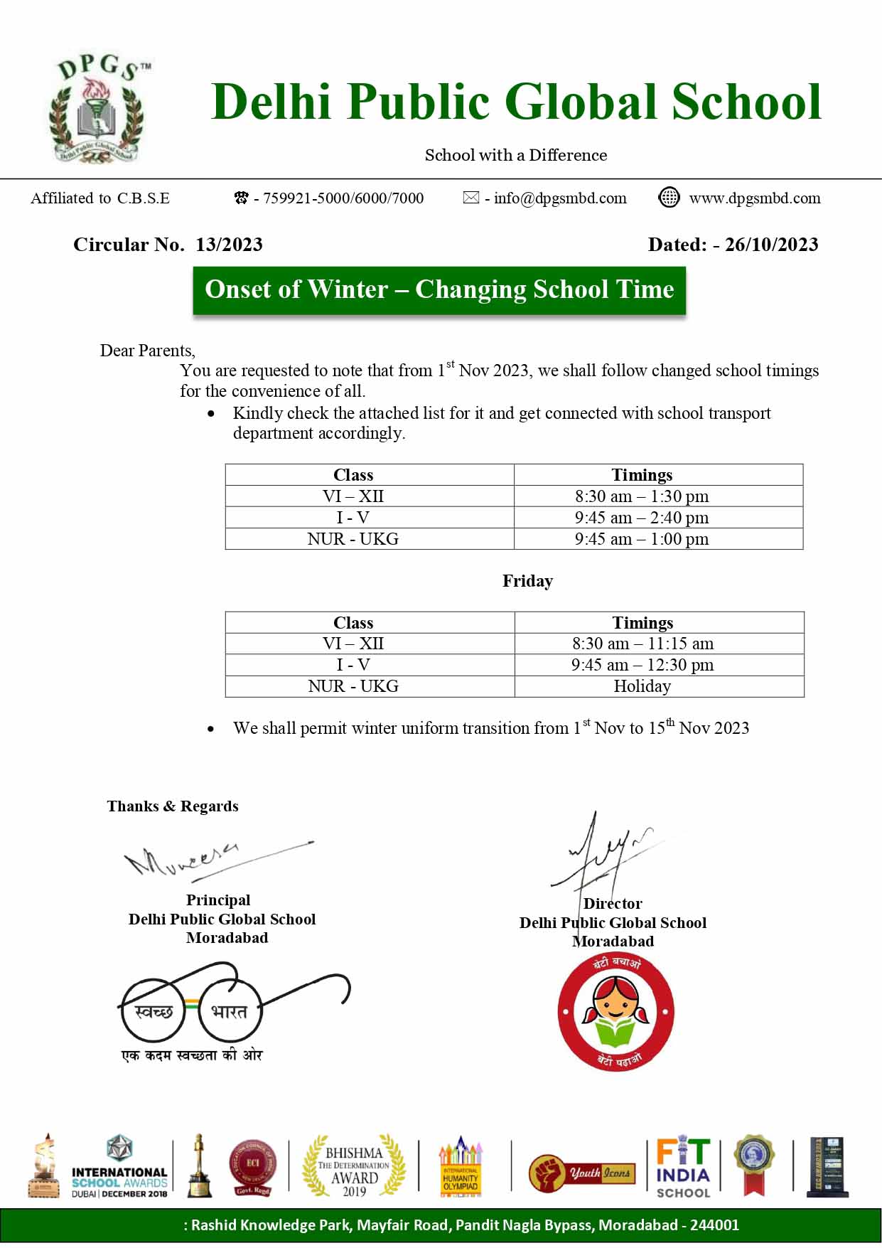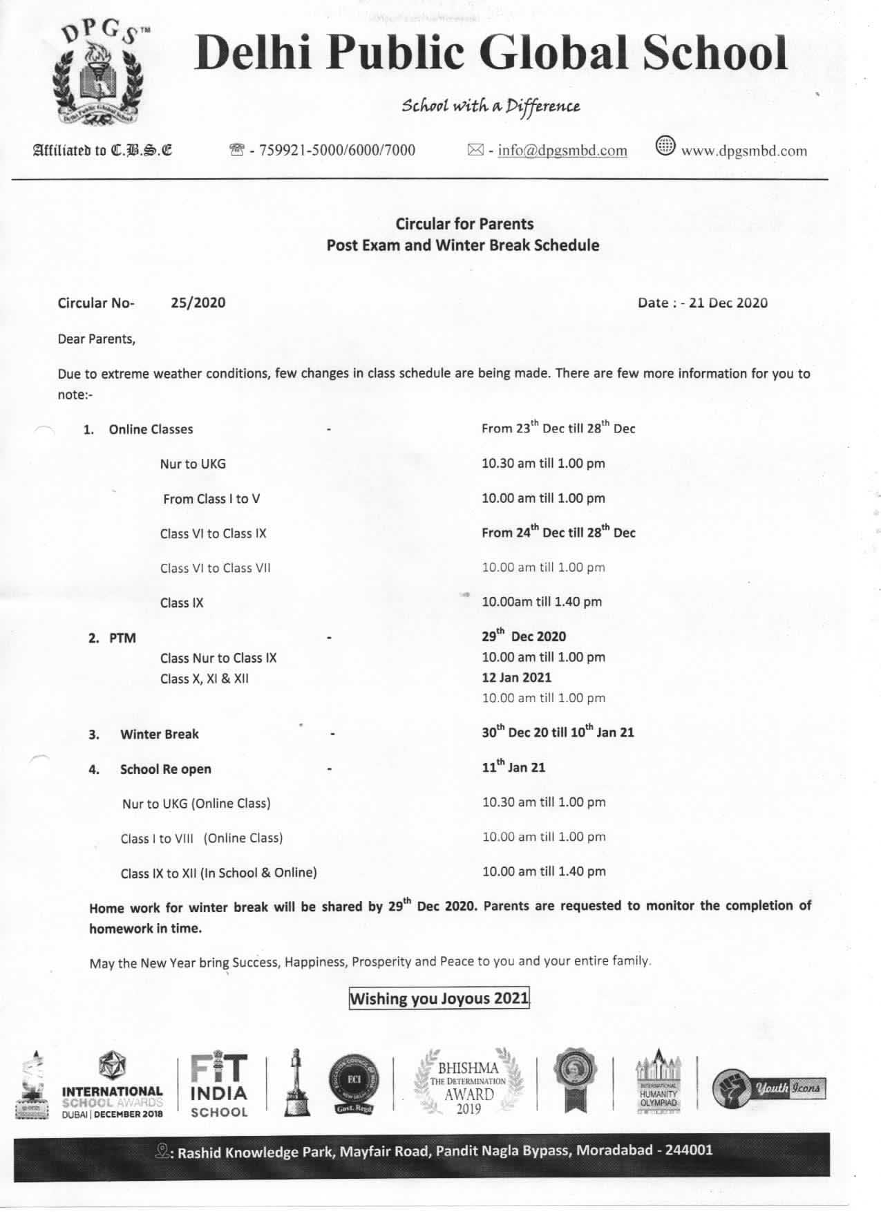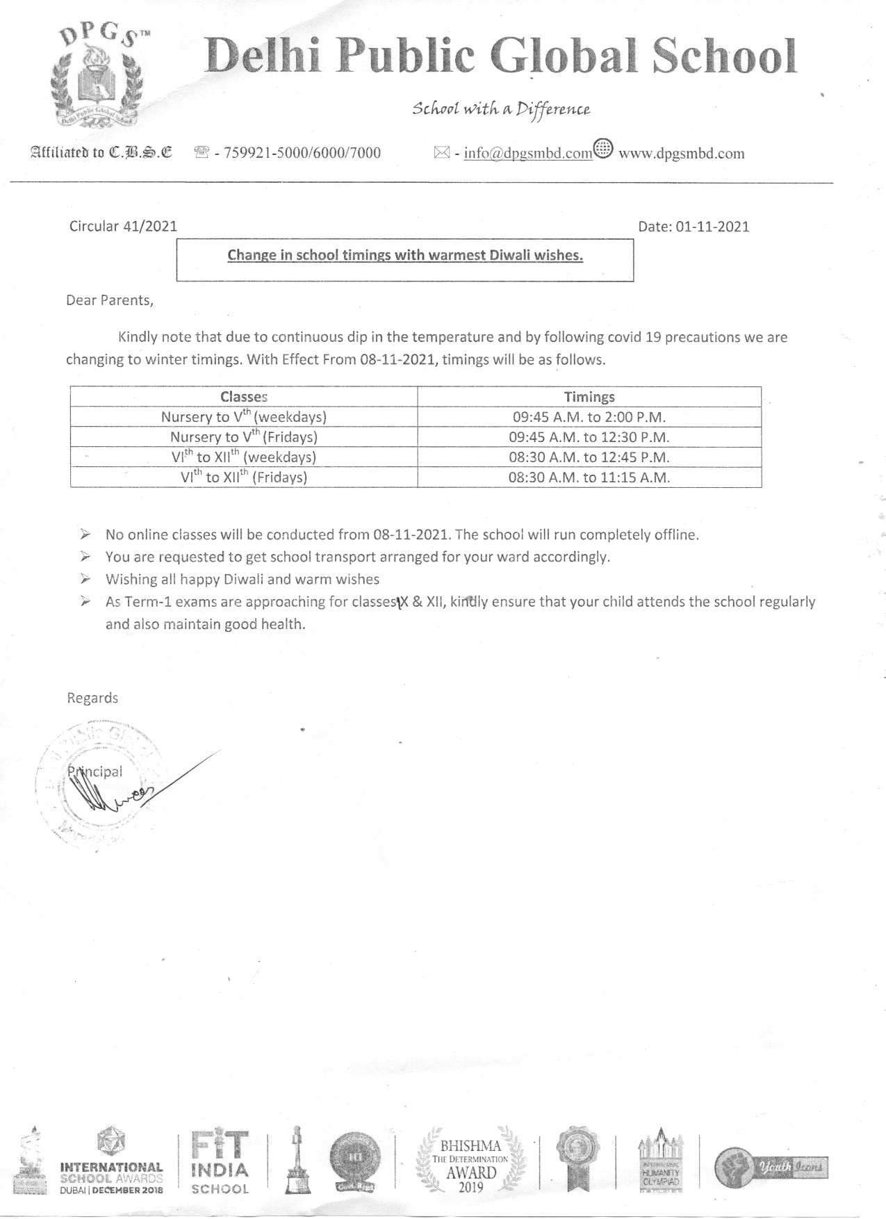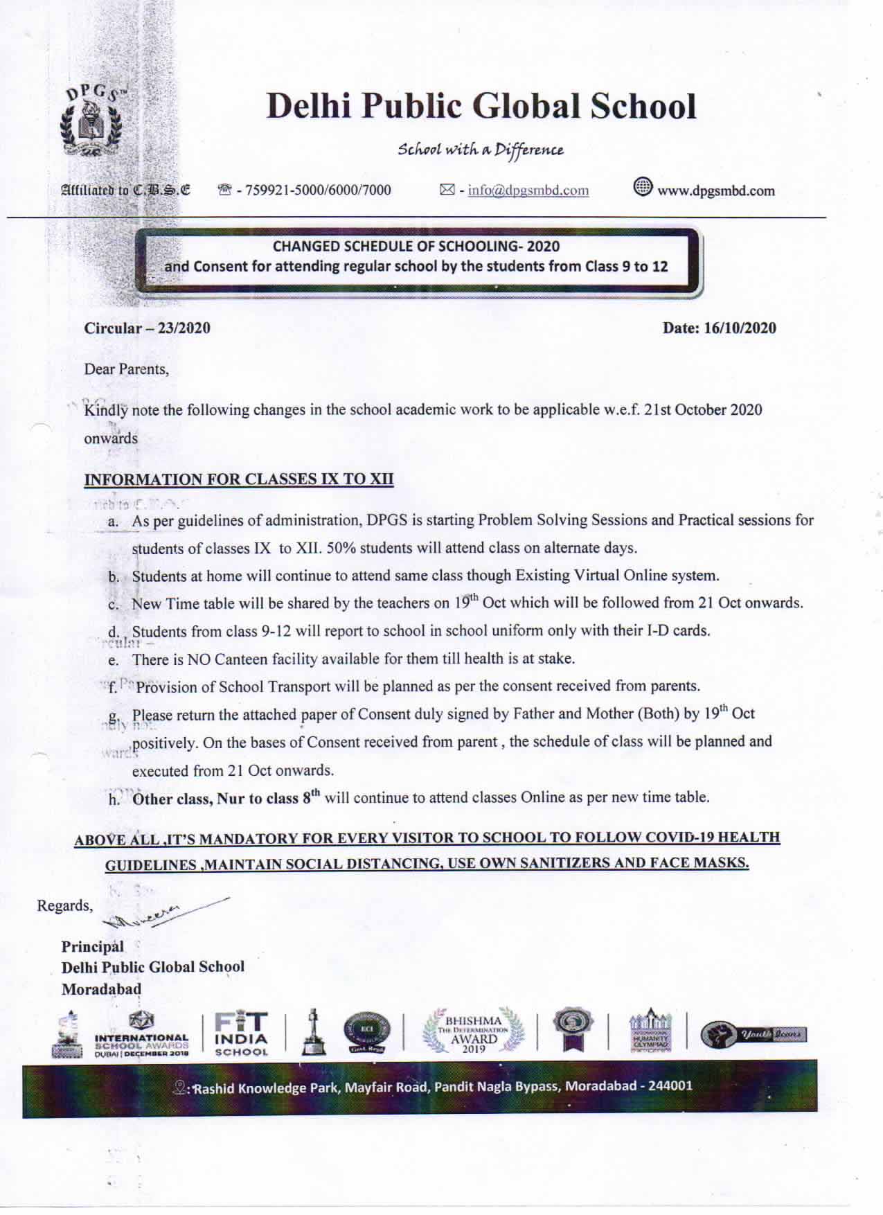 CHANGE SCHEDULE OF SCHOOLING | 16/10/2020