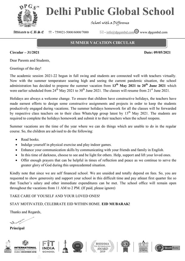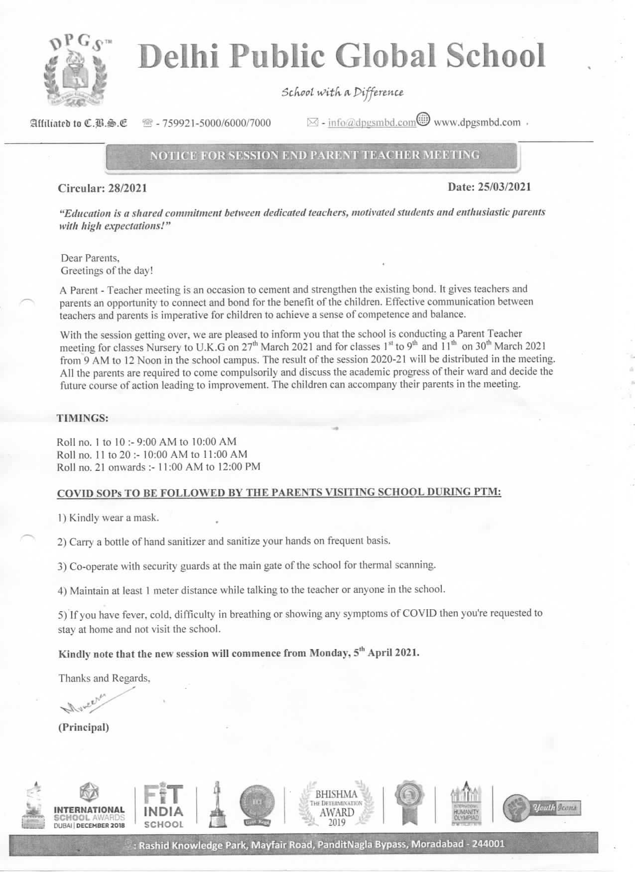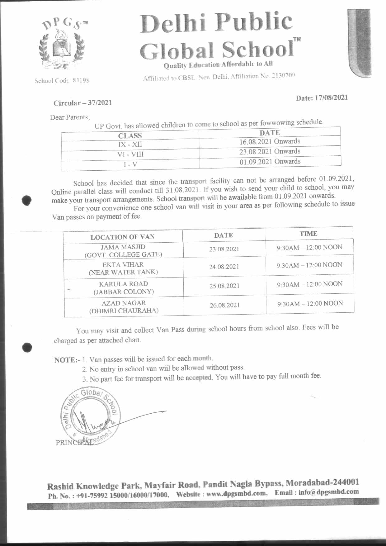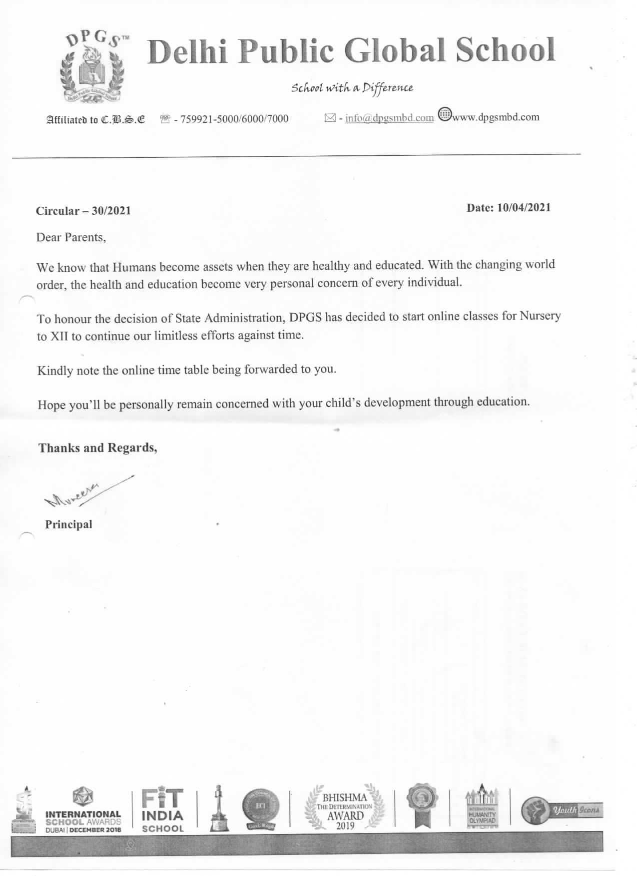 CHANGE SCHEDULE OF SCHOOLING | 16/10/2020