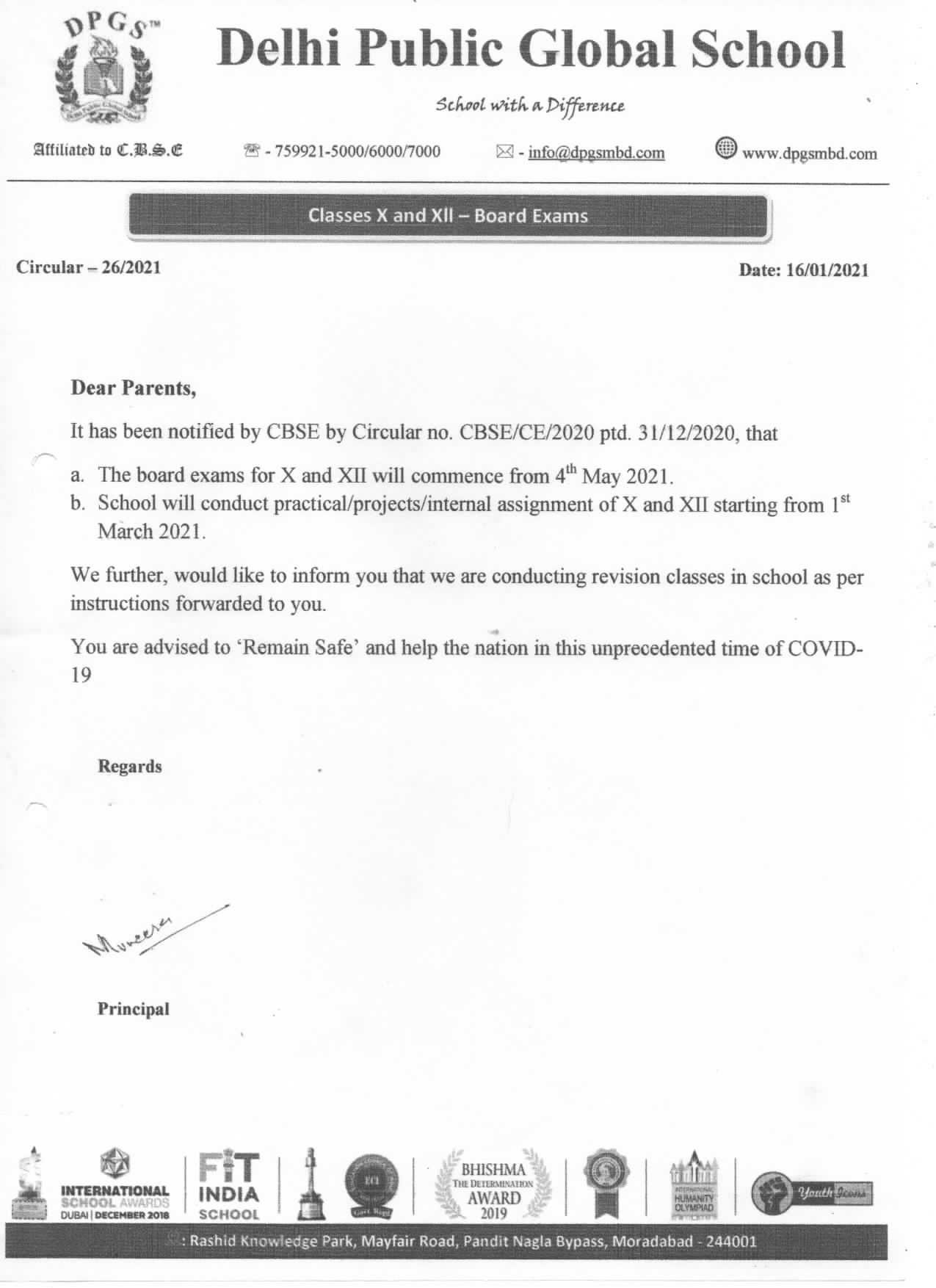 CLASSES X & XII - BOARD EXAMS | 16/1/2021
