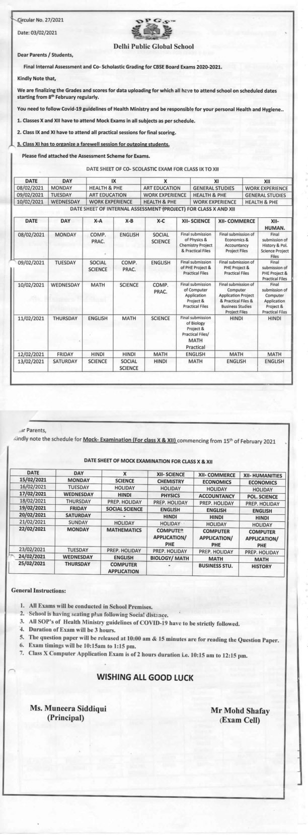 DATE SHEET OF PRACTICAL EXAM | 28/1/2021
